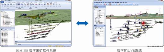 2. DIMINE數(shù)字采礦軟件的地質(zhì)資源、采礦設(shè)計(jì)與生產(chǎn)計(jì)劃等各類成果可以無縫與數(shù)字礦山VR系統(tǒng)集成。實(shí)現(xiàn)數(shù)據(jù)動(dòng)態(tài)更新與日常維護(hù),實(shí)現(xiàn)可視化集中管控。